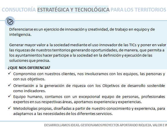 Asistimos a los municipios y territorios en la preparación de las memorias técnicas necesarias en los diferentes servicios que ofrecemos para sus proyectos de desarrollo territorial, apoyándolas en la definición y despliegue de sus políticas y estrategias.